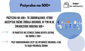 Pamiętaj, że nie każdy pożyczkodawca przy wyliczaniu zdolności kredytowej honoruje świadczenie 500+ jako dochód. Dlatego przed złożeniem wniosku, wczytaj się dokładnie w regulamin i ofertę wybranej instytucji.